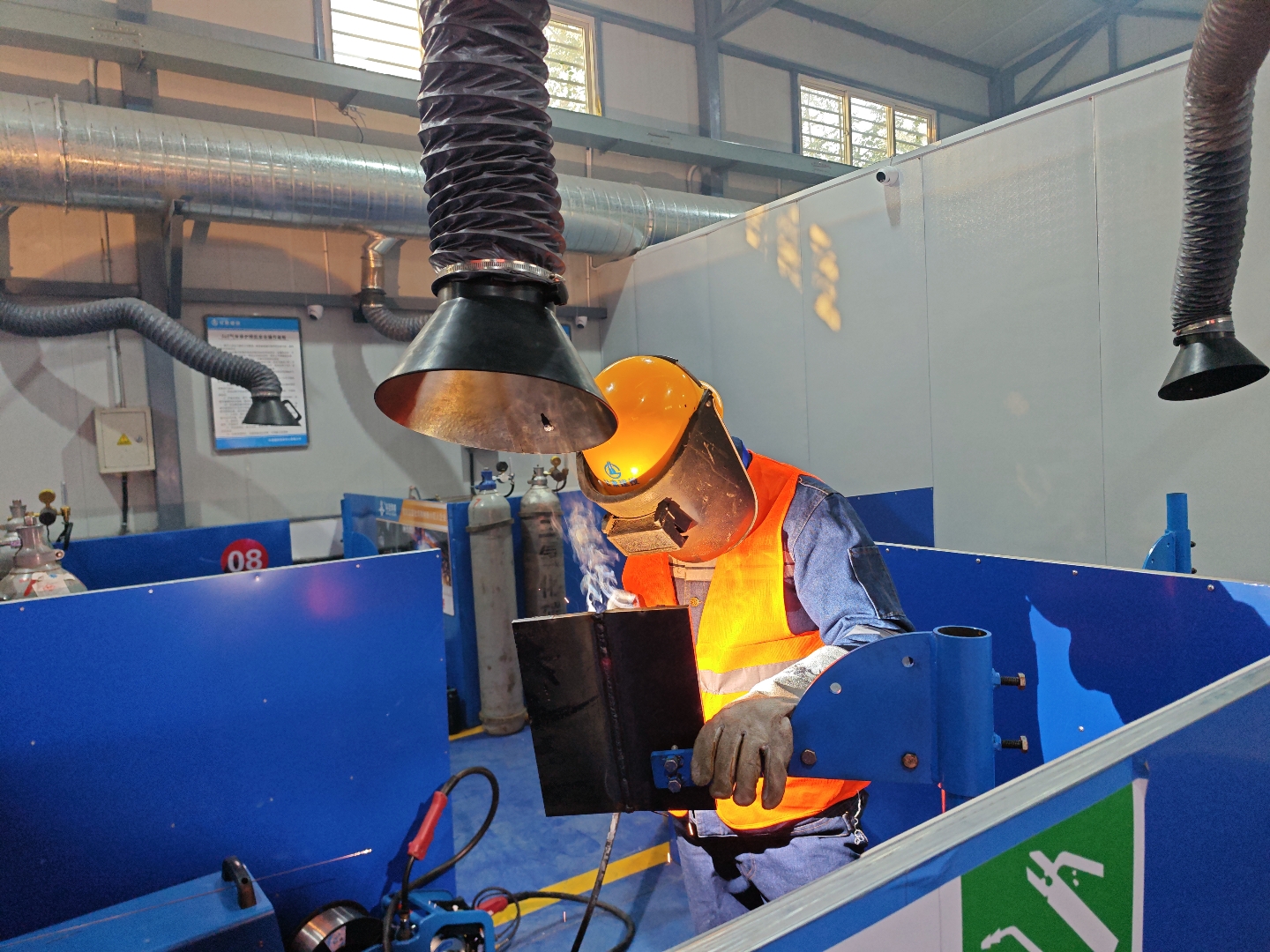 本届大赛首次采用机考模式,体现了组委会与时俱进、追求创新的新态势、新要求。实操决赛现场,焊花四溅、弧光闪烁,选手们手持焊枪精准操作,从调整焊接电流到控制运条速度,每一个细节都考验着扎实的功底。所有选手参赛规范,从打磨、上架、坡口、组对间隙、施焊、清理都一丝不苟,充分展现了参赛队伍的专业素养,比赛现场文明有序、工完场清。经过多轮激烈角逐,最终评选出一等奖2名、二等奖5名、三等奖8名及优秀组织奖7名。