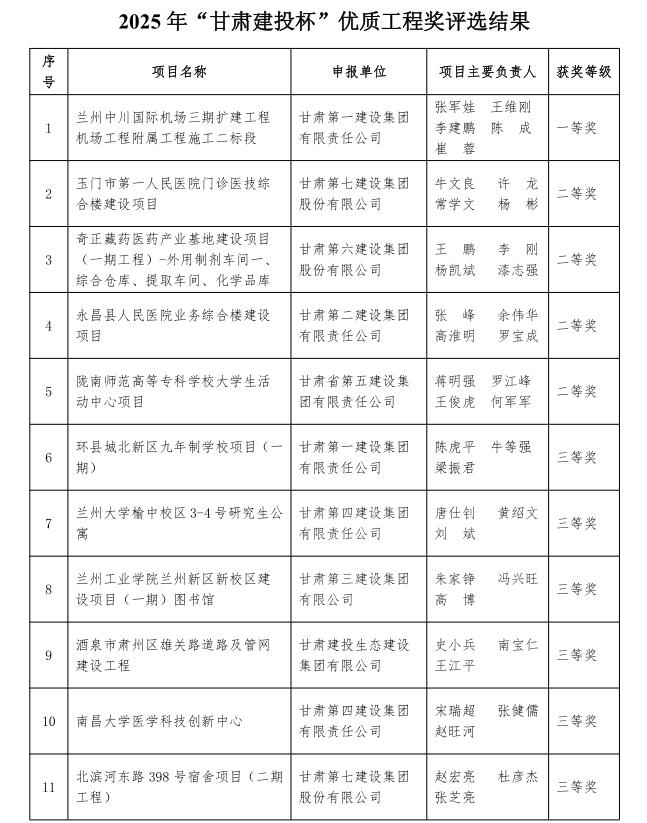 11个项目荣获2025年度“甘肃建投杯”优质工程奖