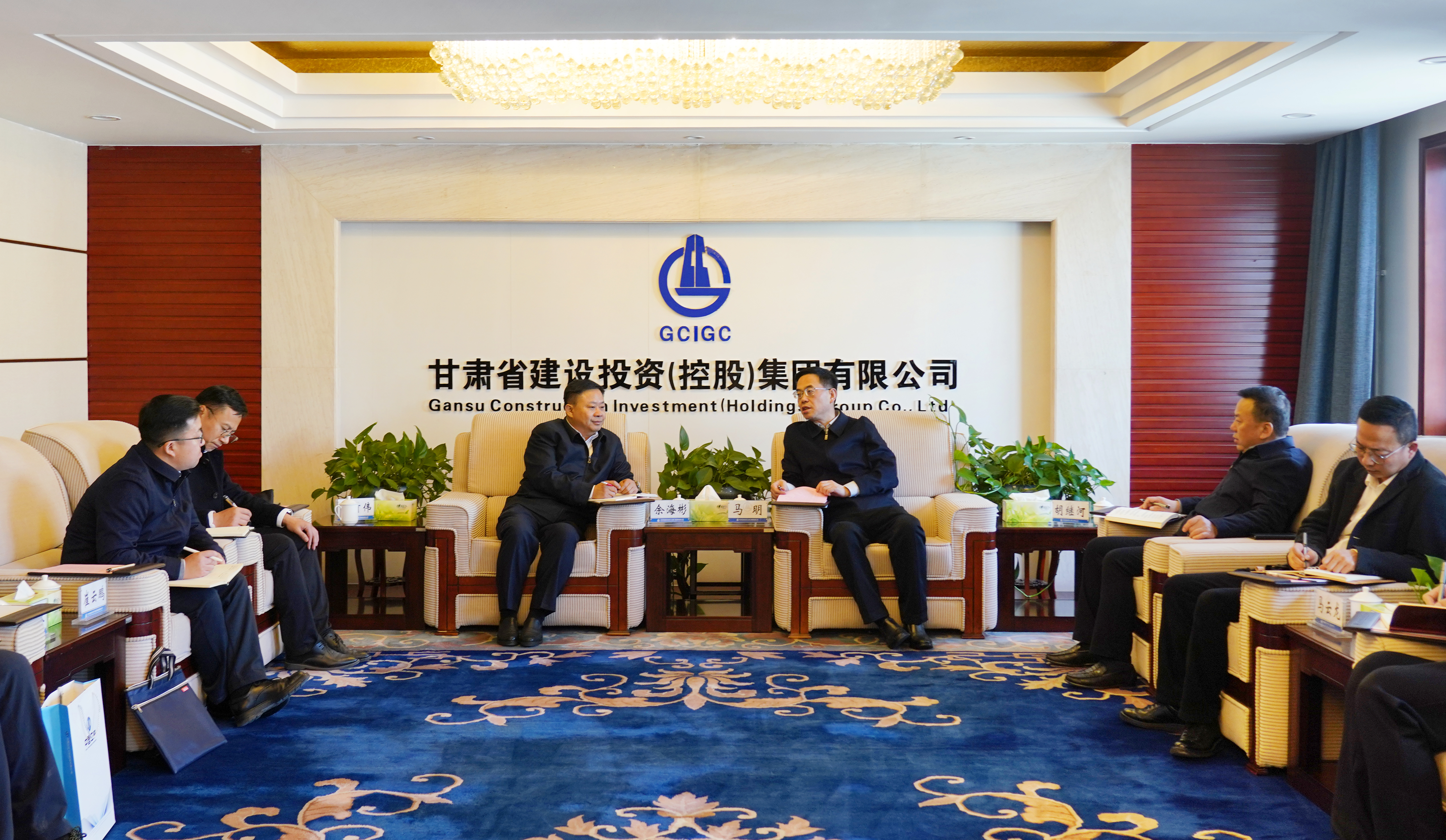 2月26日,甘肃建投党委书记、董事长马明与三峡集团甘肃分公司总经理余海彬进行对接洽谈。